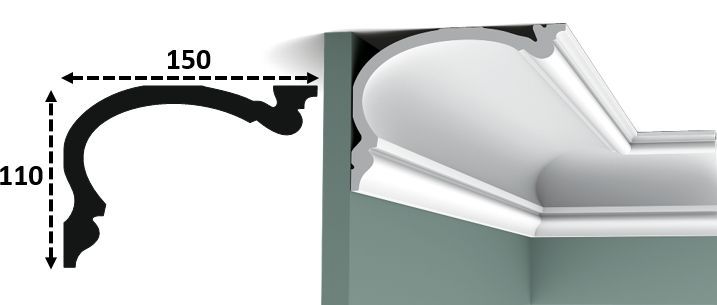 Fabricamos cualquier tipo de cornisa interior, se fabrican en poliestireno extrusionado alta densidad, normalmente de color albero claro, para su posterior pintado.