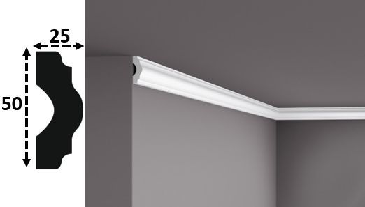 Fabricamos cualquier tipo de cornisa interior, se fabrican en poliestireno extrusionado alta densidad, normalmente de color albero claro, para su posterior pintado.
